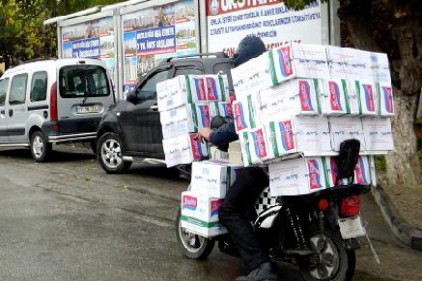 Gaziantep'te motosiklet üzerinde 40 koli makarna taşıyan Suriyeli genç görenleri hayrete düşürdü.