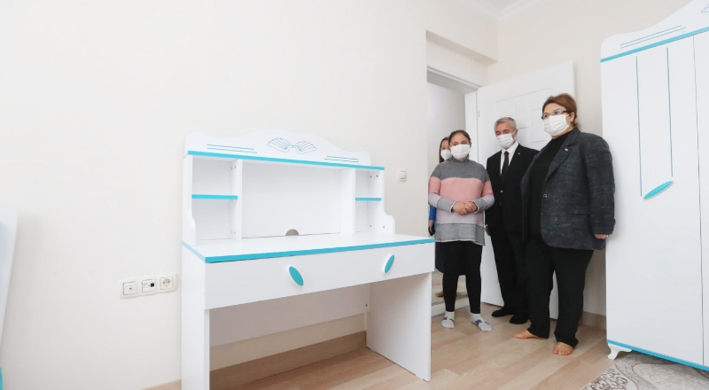 Şahinbey Kongre ve Sanat Merkezi’nde 100 ihtiyaç sahibi yetim aile için yapılan konutların kura çekimine katılan Aile ve Sosyal Hizmetler Bakanı Derya Yanık, Şahinbey Belediye Başkanı Mehmet Tahmazoğlu konutların kura çekimi programı öncesinde evlerine taşınan ailelerden Adile Kılıç’ı ve torunlarını ziyaret ederek aile ile sohbet etti.