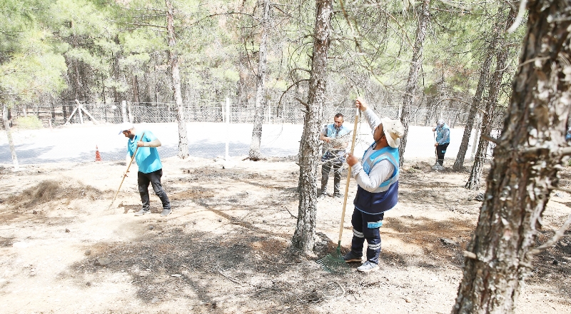 Bu kapsamda Erikçe ormanı, Burç Tabiat Parkı ve Gaziantep Üniversitesi civarındaki ormanlık alanlarda 48 personel, 3 Bobcat, 2 JCB, 2 çöp kamyonu ve 11 adet motorlu tırpan ile orman altı temizlik çalışmaları yapılıyor. Yangın esnasında ateşlerin yayılma olasılığını artıracak kozalaklar başta olmak üzere çam pürleri, cam, teneke, plastik şişeler gibi yanıcı materyaller toplanarak geri dönüşüme gönderiliyor.