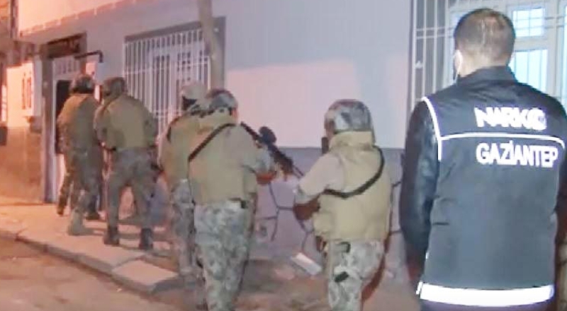 Gaziantep İl Emniyet Müdürlüğüne bağlı Narkotik Suçlarla Mücadele Şube Müdürlüğü ekipleri, çok sayıda Polis Özel Harekat ekibinin katılımıyla zırhlı araç, drone ve dedektör köpek destekli uyuşturucu operasyonu yaptı.