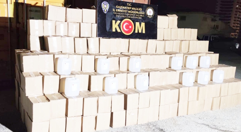 Emniyet Müdürlüğü Kaçakçılık ve Organize Suçlarla Mücadele Şubesi ekipleri, vergi kaybını engellemek, haksız rekabeti ve kaçakçılığı önlemek amacıyla yürüttüğü çalışmalar kapsamında Şehitkamil ilçesindeki bir nakliyat firmasına baskın düzenledi. Yapılan bastında Gaziantep'ten başka illere gönderilmek üzere hazırlanan 4 ton etil alkol ele geçirildi.