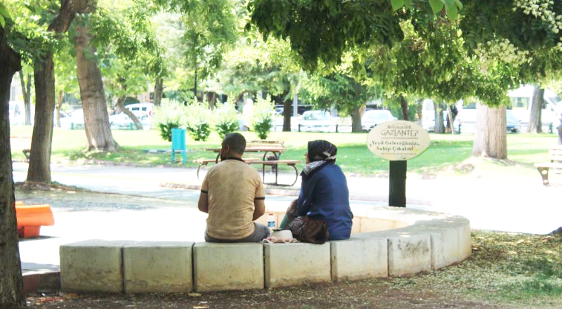40 dereceyi aşan sıcaklıktan bunalan kent sakinleri 100. Yıl Parkı'na akın etti. Gaziantepliler serinlemek için gölgelik alanlarda ailecek vakit geçirdi.