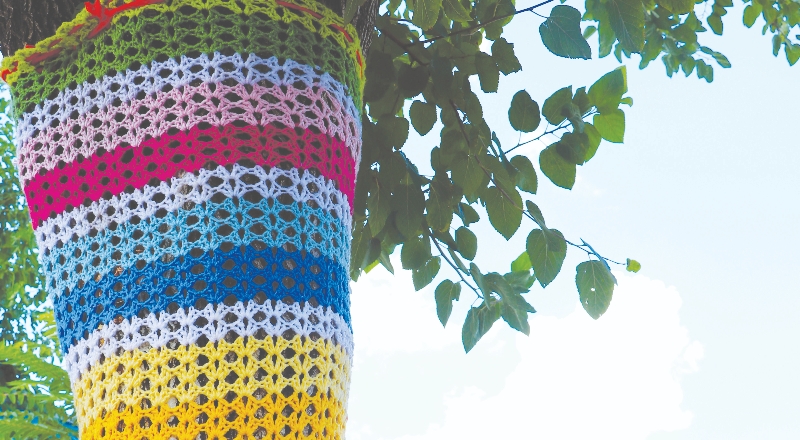 Tarihi Gaziantep Kalesi civarında bulunan Kültür Yolu üzerindeki ağaçların bir kısmına liflerden örülen el işlemeleri giydirildi. Ağaçların yaprakları sararmaya başlarken, rengarenk giydirilen ağaçlar ortaya cıvıl cıvıl bir görüntü çıkardı. Esnaf ve vatandaşlar karşılaştıkları manzara karşısında sürpriz yaşadıklarını kaydetti.