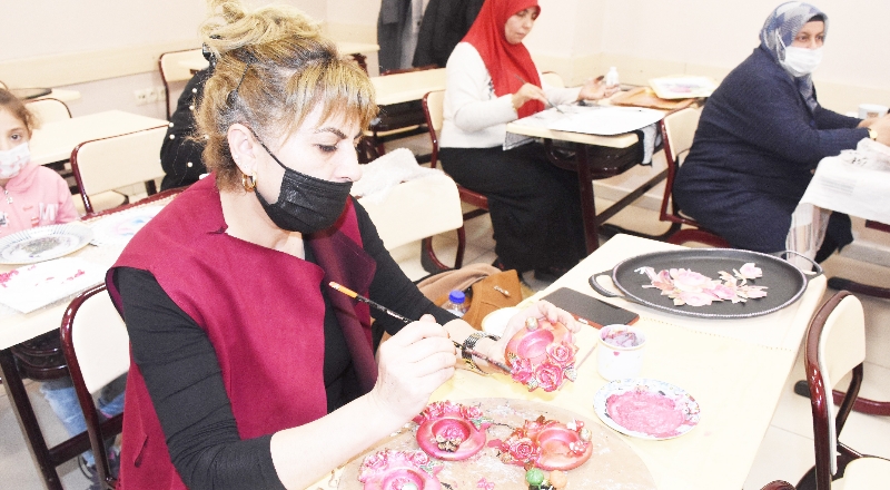 Şahinbey Belediyesi’ne bağlı Yaşar Torun Gençlik Merkezi’nde eğitim alan kursiyerler Ahşap Boyama Kursu’nda hem moral buluyor hem de evlerine ekonomik katkı sağlıyorlar.