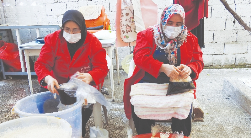 Günlük 400 ila 500 paket arasından meyan şerbeti paketlediklerini belirten Şükriye Gezer ve Himaye Yorguner, “Ramazan ayı için meyan şerbeti paketliyoruz. Hazırlıklar yapıyoruz. Günlük 400-500 paket meyan şerbeti paketliyoruz ama belli olmuyor. Sabah başlıyoruz iftar vaktinde top atılana kadar yapıyoruz. Meyan şerbetini ağabeyim yapıyor. Bizde Ramazan Ayında yardıma geliyoruz. Meyan Şerbeti poşetliyoruz. Sabah 8.30’da mesaiye başlıyoruz iftara kadar meyan şerbeti paketliyoruz. İftardan sonra da akşam 11.00’e kadar da temizlik yapıyoruz. Çünkü bu malzemelerin temizlenip yarına hazırlanması gerekiyor” diye konuştu.