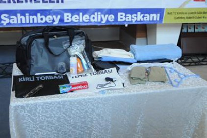Şahinbey Belediyesi tarafından askere gidecek gençlere 25 çeşit kişisel malzemenin bulunduğu çanta dağıtıldı.