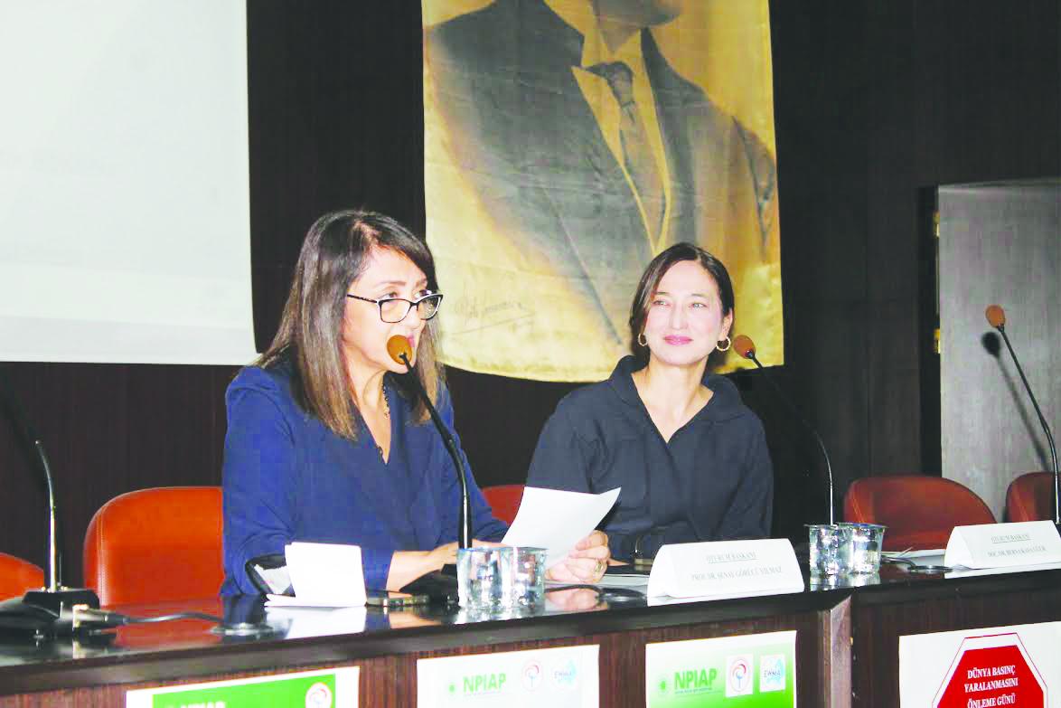 GAÜN Hastanesi oditoryumunda gerçekleştirilen programda, basınç yaralarının önlenmesine yönelik farkındalık oluşturulması hedeflendi. Programın açılış konuşmasını yapan GAÜN Sağlık Bilimleri Fakültesi Dekan Yardımcısı Prof. Dr. Şenay Görücü Yılmaz, basınç yaralarının sadece bir cilt problemi olmadığını, hastaların yaşam kalitesini etkileyen, ağrı ve enfeksiyon riski taşıyan, hastanede yatış sürecini uzatan ve bakım kalitesinin önemli bir göstergesi olduğunu vurguladı. Prof. Dr. Yılmaz, “Her bir basınç yarası sadece bir hasta için fiziksel bir yaradan öte bizler için de mesleki bir çağrıdır. Kanıta dayalı uygulamalar, yenilikçi teknolojiler ve multidisipliner yaklaşımla bu yaraların önüne geçebiliriz” dedi.