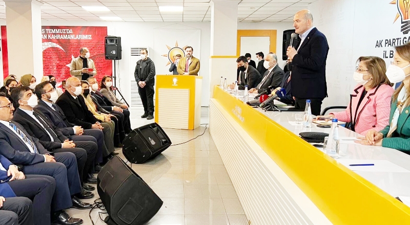 Soylu, şunları kaydetti:“Gaziantep’te belediye başkanlarımızın ortaya koyduğu irade ile valimiz, milletvekillerimiz, il başkanlarımız ile işini bilen, milletin hizmetkarı olan ve Gazi şehrin şanına, unvanına, tarihine yakışan bir hizmetkarlık anlayışına sahip bir ekip var. ‘Biz buna nasıl katkı verebiliriz?’ düşüncesindeyiz. Bunun için bütün arkadaşlarımızla buradaydık. İnanıyorum ki Gaziantep’teki bu güzel ve asil şehrin insanlarına dünyanın en güvenli şehri yakışır. Bunun içinde emre amade olduğumuzu, bütün bu şehrin yaşayanlarının emirlerinde olduğumuzu, gücümüzün son damlasına kadar da bu konuda ortaya koyacağım iradeyi yansıtacağımız bir kez daha sizin huzurunuzda belirtmek isterim. Etrafımızdaki coğrafyadan bize yansıtmak istedikleri olumsuzluklara bu zamana kadar müsaade etmedik. Hep birlikte el birliği ile etrafımızdaki coğrafyaya huzur yansıtan bir ülke olmayı da Allah bize nasip eylesin.”