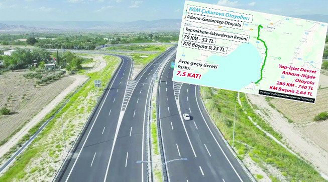 "2026 yılı itibarıyla Karayolları 5’inci Bölge’de, kamunun ücretli işlettiği Toprakkale-İskenderun kesimi araç geçiş ücreti kilometre başına 0,35 TL. En yakın Karayolları bölgesinde bulunan, yap-işlet-devret modeliyle yandaş şirketlerin işlettiği Ankara-Niğde Otoyolu’nun araç geçiş ücreti kilometre başına 2,64 TL. Aradaki fark yedi buçuk kat. Bu otoyolun özelleştirilmesi demek, araç geçiş ücretlerine yüzde 650 zam demektir. Bunun adı özelleştirme planı değil, soygun planıdır.” cumhuriyet