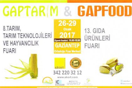 Gaziantep Sanayi Odası tarafından, Gaziantep Ticaret Odası, Gıda, Tarım ve Hayvancılık İl Müdürlüğü, Gaziantep Tarım Kredi Kooperatifleri Birliği, Gaziantep Ziraat Odası, Gaziantep Ticaret Borsası, Güneydoğu İhracatçılar Birliği’nin destekleriyle Akort Fuarcılık organizasyonuyla düzenlenen GAPTARIM ve GAPFOOD fuarları ziyaretçilerle buluşacak.