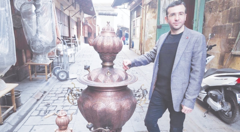 Kaynar, ustalık eseri olarak yaklaşık 7 ayda 180 santimetrelik dev semaver yaptı. Tamamıyla bakırdan ve el emeğiyle yapılan dev semaver, 80 bin TL’den alıcısını bekliyor.