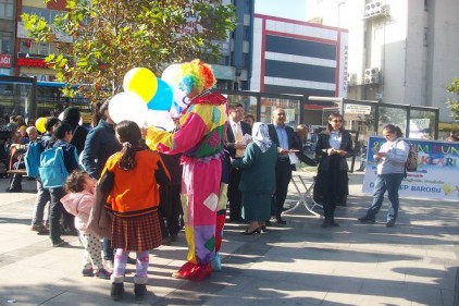 Gaziantep Barosu “Dünya Çocuk Hakları Günü’nde Balıklı Parkı’nda çocuklara balon ve şeker dağıttı. Çocuk Hakları Komisyonu tarafından yapılan açıklamada, “Çocuk hakları bağlamında, uzun yıllardır, özellikle fiziksel ve cinsel olmak üzere çocuğa yönelik her türlü istismarın yaşandığı ve sık sık toplumda infial uyandıran şekilde gündeme gelen sorunlardan biri de çocuk cezaevleridir” denildi..
