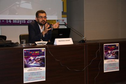 Gaziantep 2. Kitap Fuarları etkinlikleri kapsamında Hasan Kalyoncu Üniversitesi Kütüphane Direktörü Mustafa Cesur, Gaziantep Üniversitesi Mavi Salon’da düzenlenen söyleşide öğrencilerle bir araya geldi. Mustafa Cesur, “Google neyi bilmiyor” söyleyişine öğrencilerin büyük bir ilgi gösterdiği gözlemlendi.