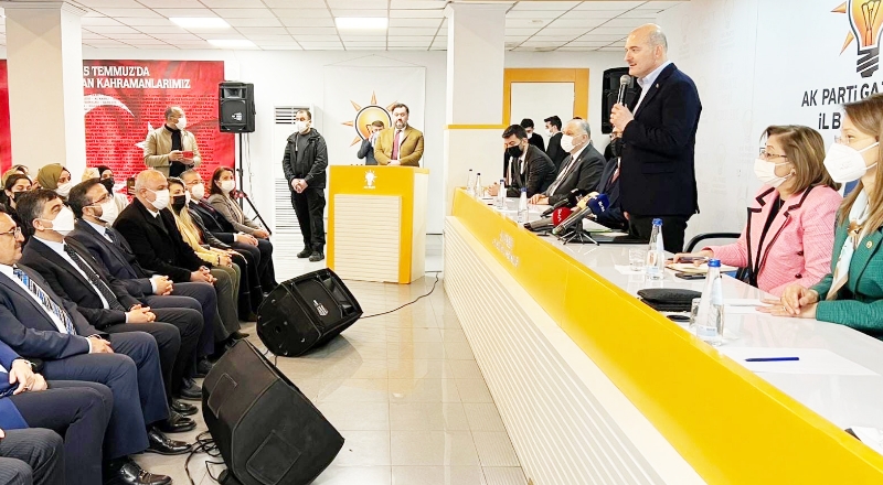 Ekonomiye değinen bakan Soylu, "Cumhurbaşkanı Erdoğan'ın üzerinde titrediği, artık milliliğin ve yerliliğin en üst sınırı olabilecek ekonomik vesayeti hep beraber kaldıracağız. Bu ekonomik vesayeti yırtacağız, bu ekonomik vesayeti yeneceğiz, bu ekonomik vesayetin sahiplerine, onların sisteminin dünyada işlemediğini Türkiye'den göstereceğiz. Dünyadaki başka ülkelere de model olacak. Bugüne kadar yaptıklarımızı yaptık. Yapacaklarımız da bunun teminatıdır. Teslim olmuşlar ne söylüyorlarsa ona inanacağız. Hangi programı koyacaklarla bunu sağlayacağız. 'IMF'siz yürüyemezsiniz' yürüdük ne oldu. 'İnsansız hava aracı yapamazsınız' yaptık ne oldu. 'Atak helikopteri yapamazsınız' yaptık ne oldu 'Marmaray'ı yapamazsınız' yaptık ne oldu? 'Şehir hastanelerini yaparsanız batarsınız' dediler. Onlar hastanelerde insanları öldürdüler biz şehir hastanelerinde ortaya koyduğumuz iradeyle milletimize sahip çıktık. Bugünün kısa siyasi düşünceleri ve karları üzerinden hareket edenler, siyasi ve millet hayatında mağlup olmaya mutlak olarak adaydırlar. AK Parti 20 yıllık bir siyasi partidir ama bin yıllık devlet geleneğinin, binlerce yıllık millet geleneğinin ve devlet anlayışının bugünkü tercümesidir" şeklinde konuştu.