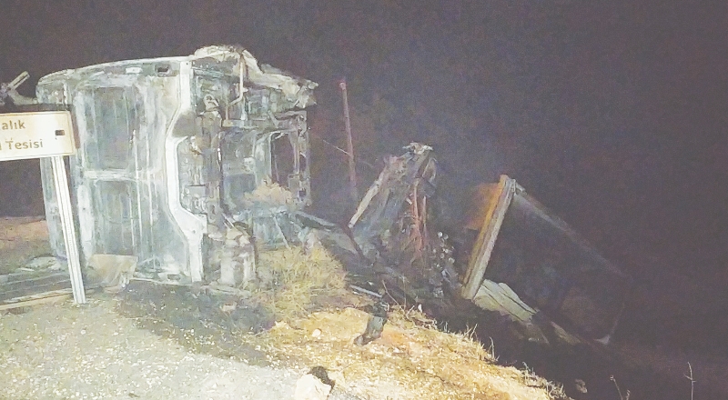 Kaza, akşam saatlerinde Nurdağı-Gaziantep karayolu kırsal Durnalık Mahallesi yakınlarında meydana geldi. İddiaya göre, İsa G. idaresindeki 27 YS 653 plakalı kum yüklü tır, yokuş aşağı seyir halindeyken bir anda freni boşaldı. Freni boşalan tır, yokuş aşağı savrularak tepelik noktaya çarptı. Çarpmanın etkisiyle bir anda alev almaya başladı. Alev topuna dönen tırın sürücüsü, ön camdan kendisini dışarı atarak canını zor kurtardı. Kazanın ardından olayı gören çevredeki vatandaşlar tarafından itfaiye sağlık ve jandarma ekiplerine bilgi verildi. Olay yerine gelen sağlık ekipleri hafif yaralanan sürücüye ilk müdahaleyi yaptıktan sonra hastaneye kaldırdı. İtfaiye ekipleri ise, alev topuna dönen tırı söndürdü.