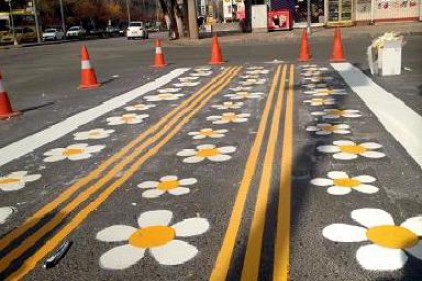 farkındalık geçinde beyaz çizgiler yerine çiçek ve böcek gibi resimler kullanılıyor.
