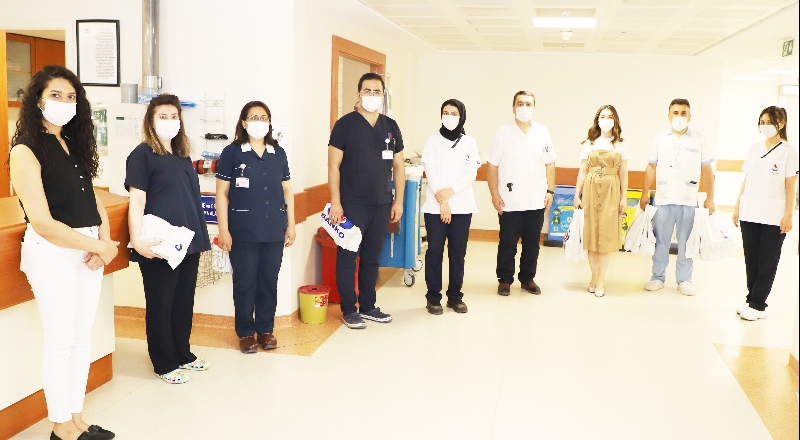 Genel Müdür Dr. Sermet Kileci, Genel Müdür Yardımcısı Rabia Ağar, Mesul Müdür Dr. Suat Özerbaş ve Başhemşire Ceylan Özyılmaz, koronavirüs salgınıyla mücadelede ön saflarda yer alan ve sorumluluklarının bilinciyle görev yapan hemşireleri birimlerinde ziyaret ederek armağan takdim ettiler.