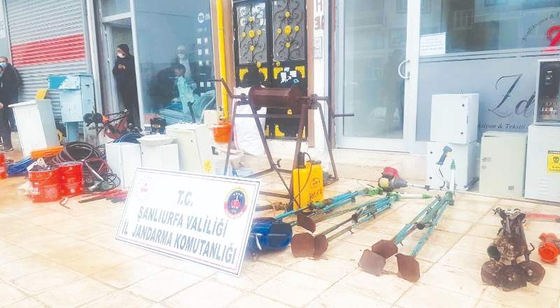 Edinilen bilgiye göre, Şanlıurfa İl Jandarma Komutanlığı Jandarma Suç Araştırma Timi (JASAT) ekipleri, Cumhuriyet Başsavcılığınca başlatılan soruşturma kapsamında, hırsızlık suçundan 15 yıl kesinleşmiş hapis cezası bulunan C.K.'nın merkez Haliliye ilçesi Ahmet Yesevi Mahallesi'nde bir depoda saklandığını belirledi. Zanlı, JASAT ekiplerince düzenlenen operasyonla yakalandı. Depodaki aramada, Şanlıurfa ve Gaziantep'te bağ, bahçe ve tarladaki 16 hırsızlık olayında çalındığı belirlenen güneş panelleri, trafolar ve kablo olmak üzere 77 tarım aleti ele geçirildi. Zanlı, Şanlıurfa İl Jandarma Komutanlığına götürüldü, çalıntı malzemeler sahiplerine teslim edildi.
