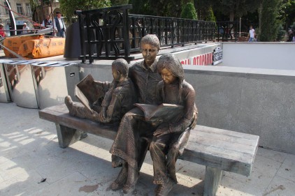Bankta oturan, toprağa uzanan insan fiğürleri ellerinde kitap okuyorlar. Heykeller ve tasarım şık ve anlamlı. Parktaki bu çalışmayı görenler ise, “Antep’te insanlara okutmayı beceremedik, bari taşlara okutalım, bakalım yüzü kızaran olur mu” diye espri yapmaktan kendini alamıyor.