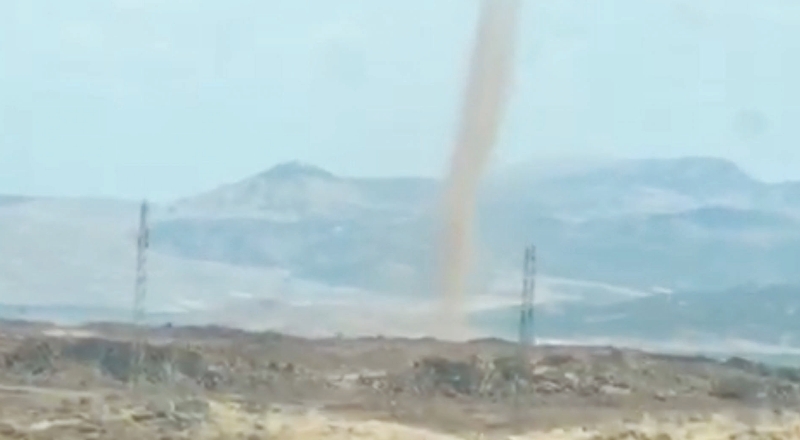 Nurdağı – İslahiye arasında çevre yolundan görüntülenen hortum bir süre sonra kayboldu.