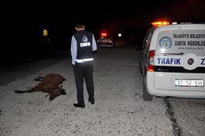 Edinilen bilgiye göre, İslahiye-Hatay çevre yolu Hastane kavşağında seyir halinde bulunan bir kamyonun önüne at sürüsü çıktı. Plakası alınamayan kamyonun çarptığı atlardan biri telef oldu.