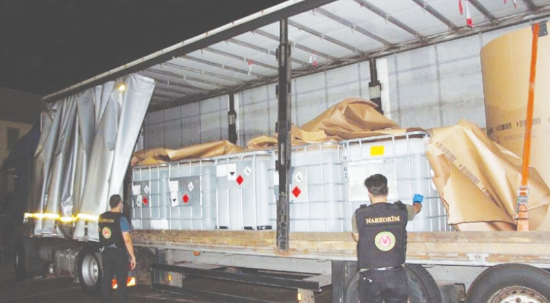 Bunun üzerine hangara alınan TIR’larda yapılan kontrollerde, TIR’ın plakasına özel olarak yerleştirilen elektronik bir düzeneğin olduğu ve bu düzenek sayesinde sürücünün bir düğmeye basarak plakayı değiştirebildiği saptandı. TIR’ın dorsesinde yapılan incelemede 8 parçadan ibaret olması gereken kağıt yükünün yalnızca 2 parçasının bulunduğu, dorsenin kalanının ise içerisinde kimyasal sıvı bulunan varillerle dolu olduğu görüldü. Analizi yapılan sıvıların eroin yapımında kullanılan 14 varil içinde 16 ton 150 kilo asit anhidrit olduğu belirlendi. Ele geçirilen asit anhidritlerden yaklaşık 8 ton eroin imal edilebileceği belirtildi.