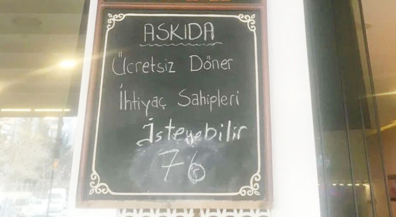 Tabelada, 'Askıda ücretsiz döner. İhtiyaç sahipleri isteyebilir' yazısı ile, bağış yapılan döner sayısının sayısının yazılı olduğunu belirten Abuşoğlu, “Yemek yiyenlerin düşülmesiyle azalıyor, yeni bağışlarla artıyor rakam. Bir bakıyorsunuz bir hayırsever gelip, ‘Benim adıma 100 döner verin' diye parasını ödüyor. Ya da yemek yiyen bir müşteri hesap öderken ‘Benden de tabelaya 3 döner yazın' diye ödeme yapıyor” şeklinde konuştu.