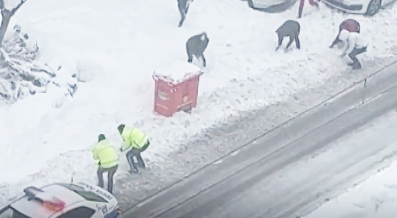 Polislerle çocukların birbirlerine kartopu atması görüntülere yansırken çocuklar oyuna katılan polisleri katıldıklarına pişman etti. Çocukların kartoplarına karşı gelemeyen polislerin araçlarına koşarak binmesi izleyenleri gülümsetti.