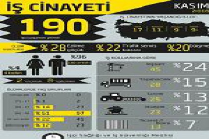 Kasım ayında en az 190 işçinin hayatını kaybetti. Ölenlerin sekizi kadın, 182'si erkek, ikisi çocuk, sekizi göçmendi.