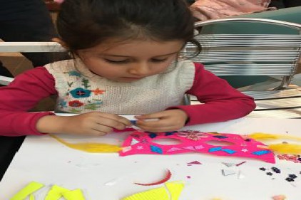 Forum Gaziantep'te düzenlenen parti maskesi atölyesinde kendi maskelerini tasarladılar.