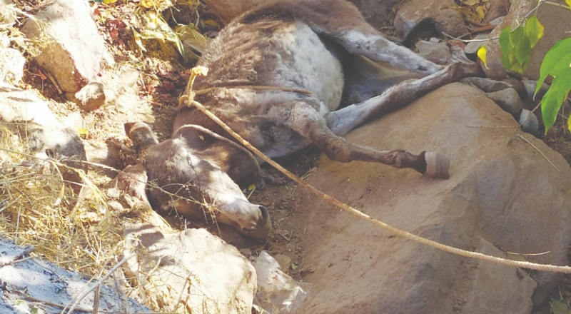 Telef olan hayvanın can çekiştiği son anları ise görüntülendi.