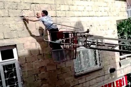 Gaziantep'te ayakları bir evin duvarında bulunan tele takılarak mahsur kalan kırlangıç, itfaiye ekipleri tarafından kurtarıldı.