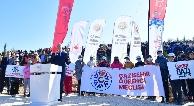 Vali Davut Gül, törende yaptığı konuşmada kampanyanın bu yıl üçüncüsünün düzenlendiğini ifade ederek şunları söyledi: “Gaziantep’te biliyorsunuz 3 yılda 27 milyon fidanı toprakla buluşturma hedefimiz var. Bu hedefe ulaşırken, Büyükşehir Belediyemiz, İlçe Belediyelerimiz, Sivil Toplum Kuruluşlarımız, kamu kurum ve kuruluşlar üzerine düşeni yapıyor. Ama asıl bu konuda lokomotif Orman teşkilatımızdır. Özellikle şehir dışındaki alanlarda yaptığı ağaçlandırmalar, inanıyorum ki 10-15 yıl sonra kendini gösterecektir. Gaziantep’te son 20 yılda ağaçlandırma oranımız %50 arttı. Mevcut ormanlık alanımız %12’den, %18’e çıktı. Daha çok ormana ihtiyacımız var ve daha çok orman yapacağız. Gaziantep’in düşman işgalinden kurtuluşunun 100. Yılındayız. Bu yıl başta olmak üzere 27 milyon fidanı toprakla buluşturduğumuzda, daha yaşanabilir bir Gaziantep’e hepimiz kavuşmuş olacağız.”