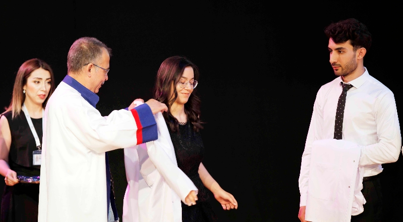 Hekim olarak mezun olduğunuzda hastalarınıza aileden biri gibi davranın. Hastayı babanız, anneniz, kardeşiniz, arkadaşınız gibi görüp şefkatli davranın. Beyaz önlüğü giyerek tıp öğrencisi olmaktan, doktorluğa adım atıyorsunuz. Hayırlı olsun.”