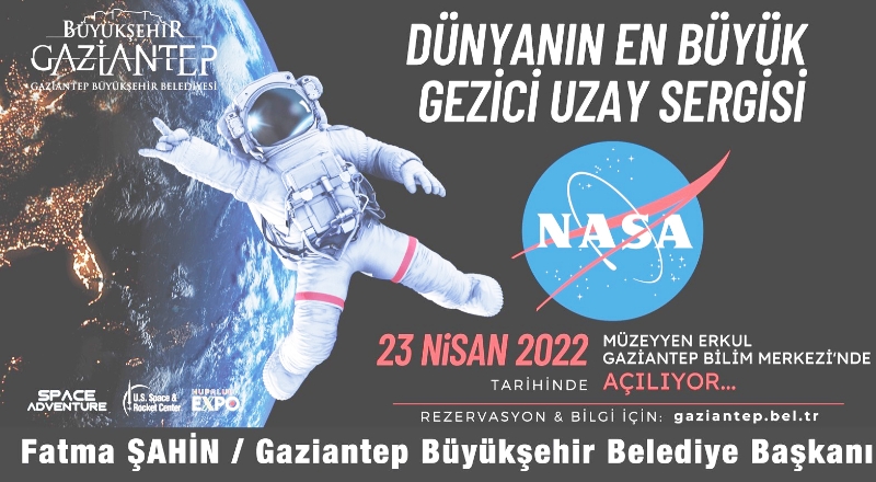 Gaziantep Büyükşehir Belediyesi, uzay yolculuğuna 60 yıl önce başlayan insanoğlunun bu süreçte kullandığı araçlarda bulunan malzemeleri, yemek aparatları, kıyafetlerin sergilendiği Amerika Birleşik Devletleri Ulusal Havacılık ve Uzay Dairesi’nin (NASA) uzay sergisini Gaziantepliler ve komşu illerdeki meraklılarıyla buluşturuyor. Yaklaşık 4 yıl içinde 12 ülkede 4 milyondan fazla kişi tarafından ziyaret edilen NASA Sergisi, 23 Nisan’dan itibaren 4 ay boyunca meraklılarına ve keşif ruhunu yaşamak isteyenlere Müzeyyen Erkul Bilim Merkezi’nde kapılarını açıyor. Serginin açılışı 23 Nisan saat 14.30’da.