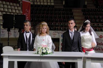Konuşmaların ardından Şahin, hazır olan nikah memurları ve davetlilerin önünde önce gelin sonra da damat adaylarına birbirlerini eş olarak kabul edip etmediklerini sordu. Gelin ve damatların hep bir ağızdan "Evet" yanıtını vermelerinin ardından nikah memurları resmi işlemleri gerçekleştirdi.