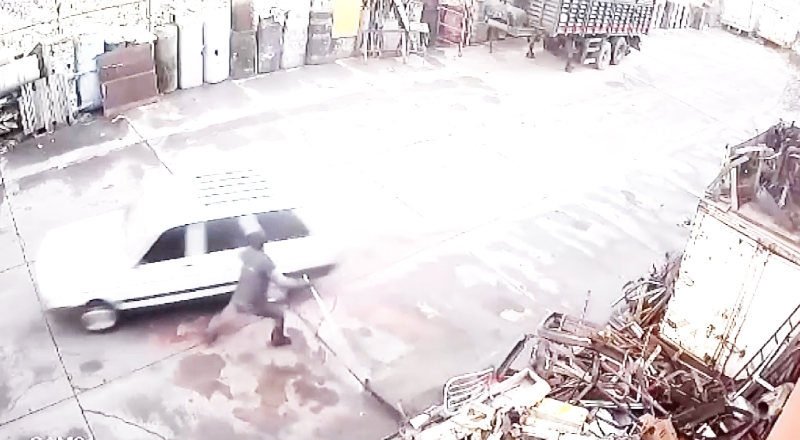Şehitkamil, Sanayi Mahallesinde bir iş yerine giren hırsızlar maddi değeri 6 bin TL olan, tırlar da kullanılan 4 adet akaryakıt depo çerçevesi çaldı. Olayı fark eden bir görevli ise otomobille gelen hırsızları elindeki demir çubuk ile kovaladı. Otomobile binerek kaçan şahısları son anda elinden kaçıran görevli, elindeki demir çubukla son bir hamle ile araca vurabildi.