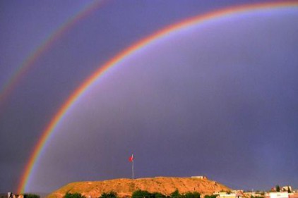 Araban ilçesi kent merkezinde akşam saatlerinde kısa süreli yağan yağmurun ardından açan güneşle birlikte gökkuşağı çıktı. tarihi Raban Kale-i Zerrin üzerinden Hafif yağan yağmur sonrası güneşin açmasıyla çıkan gökkuşağı net bir şekilde gözlendi. Tarihi Raban Kale-i Zerrin'in hemen yanından çıkan kaleyi saran gökkuşağı muhteşem bir görüntü oluşturdu. Gözlerin pasını silen manzaraya hayran kalan vatandaşlar, eşsiz manzarayı fotoğraf makineleri ve cep telefonları ile kaydetti.iha