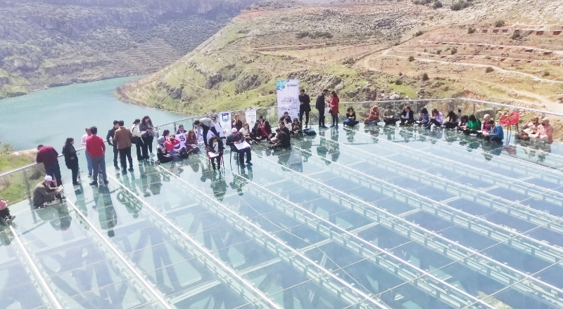 Cam Teras'ta yapılan etkinlikte, kitapseverler kitap okuyarak güzel hava ve manzaranın keyfini çıkartırken aynı zamanda cam terasın yapısı nedeniyle heyecanlı dakikalar yaşadılar.