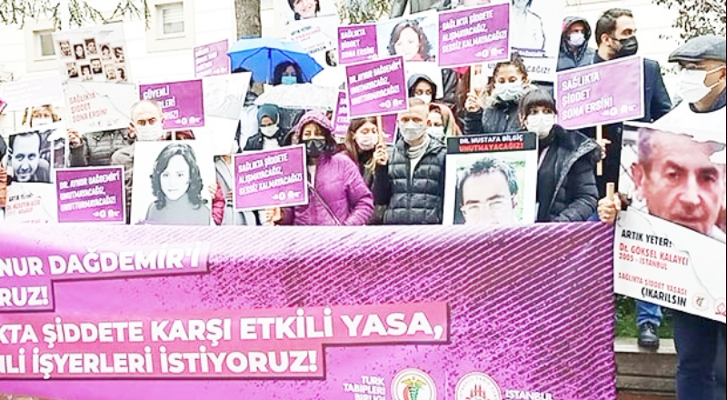 Hekimler bugünkü eylemini, "Güvenli ortamlarda çalışabilmek, özlük haklarımıza ve halkın sağlık hakkına sahip çıkmak için eylemdeyiz" diyerek görev yaptığı hastanede kadına yönelik şiddeti önlemeye çalışırken hayatını kaybeden meslektaşları Dr. Aynur Dağdemir’in öldürüldüğü gün olan 19 Kasım’da “Sağlıkta Şiddete Karşı Etkili Yasa, Güvenli İşyerleri İstiyoruz” şiarıyla Zeynep Kamil Eğitim Araştırma Hastanesi önünde basın açıklaması gerçekleştirerek, Dr. Aynur Dağdemir’i andı.