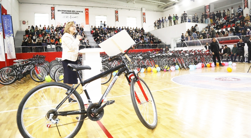 Dağıtım töreninde açıklamalarda bulunan Gaziantep Büyükşehir Belediye Başkanı Fatma Şahin, kentin eğitim, bilim, sağlık, spor şehri olması adına yola çıktıklarını belirterek, “Dünya Sağlık Haftası’ndayız. Biz eğitim şehri, bilim şehri, sağlık şehri ve spor şehri Gaziantep için yola çıktık. Genç dostu Gaziantep için yola çıktık. Bu yolculukta en önemli gücümüz geleceğimiz olan gençlerimizdir. Gençlerimizi her anlamda geleceğe çok iyi hazırlamamız lazım. Bu yüzden gençlerimize pek çok destek sağladığımız gibi bisiklet desteği de sağlıyoruz. Bisiklet neden önemli, çünkü bisikletle insan vücudu rahat buluyor. Ayrıca bisikleti ulaşımda kullandığınız zaman karbondioksit salınımını da engellemiş oluyorsunuz. Havayı kirletmemiş oluyorsunuz. Biz imar master planı için yola çıktığımızda da bisiklet yollarının olması gerektiği kararını almıştı. Bu çerçevede şehir merkezinde 110 kilometre bisiklet yolu planladık ve bunu 55 kilometresini tamamladık. Bir taraftan da bisiklet kullanımını teşvik etmemiz gerekiyordu. Bunun için de yarışmalar düzenleyerek gençlerimize bisiklet dağıtımı yaptık. Bu zamanla bütün ilçelere yayılacak. Biz gençlerimizden daha fazla bisiklet kullanmalarını istiyoruz. O yüzden ‘Sağlık İçin Pedalla’ diyoruz” ifadelerini kullandı.