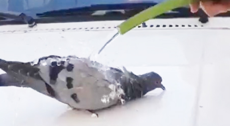Nizip ilçesine bağlı Tahtani Mahallesi’nde yaşayan Recep Serçe, dün öğlen saatlerinde arabasını yıkamaya başladı. O esnada aracın kaput kısmına konan güvercini fark eden Serçe, hortumdan akan suyu güvercine çevirdi. Aşırı sıcaktan bunalan güvercinin hortuma doğru gelerek su içmesi ve serinlemeye çalışması cep telefonu kamerasıyla görüntülendi.