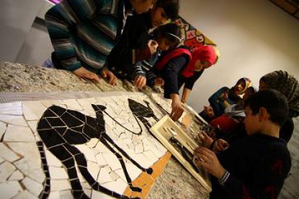 Büyükşehir Belediyesi Çocuk Sanatı Merkezinde düzenlenen kursla, Suriyeli çocukların mozaik sanatıyla resmettiği deve ve insan figürleri, Fıstık Parkı'nı renklendirecek.
