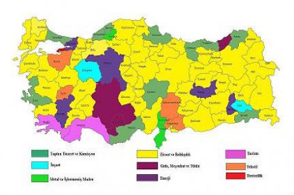 "Denizcilik"te Yalova, "inşaat"ta Eskişehir ve Siirt, "turizm"de Antalya ve Muğla, "gıda"da Konya, Rize ve Karaman, "metal ve işlenmiş maden"de Hatay, Karabük ve Osmaniye, "tekstil"de Kahramanmaraş, Bursa, Gaziantep ve Uşak, "enerji"de ise Ankara, Denizli, Kocaeli, Elazığ ve Batman illeri öne çıktı.