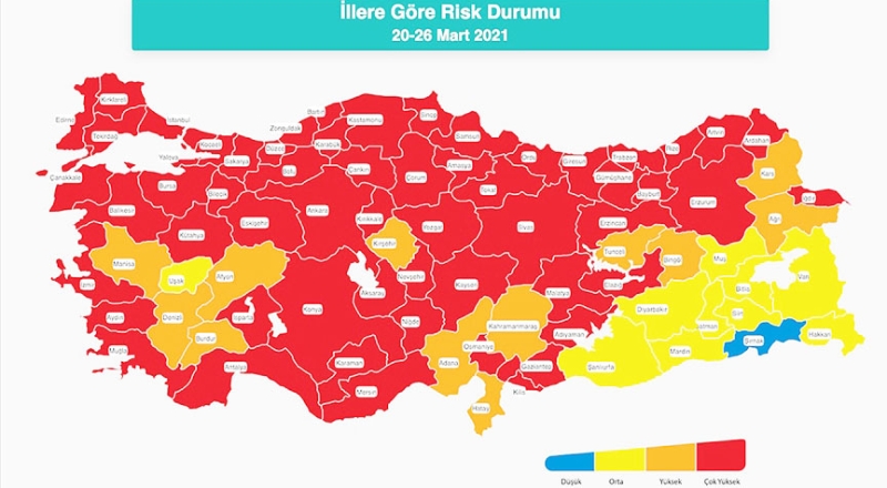 Düşük risk kategorisindeki Uşak, Şanlıurfa, Mardin, Hakkari, Diyarbakır, Batman, Siirt, Bitlis, Van, Bingöl, Muş, Ağrı ve Iğdır'ın haritadaki rengi değişti.