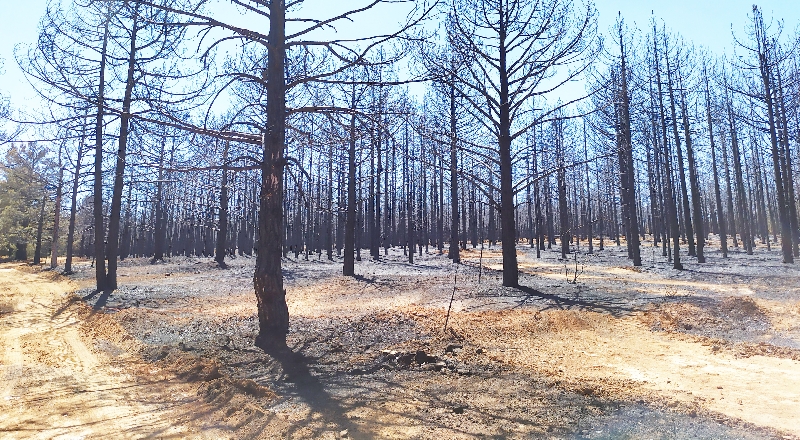 Yanan ormanlık alan havadan görüntülendi