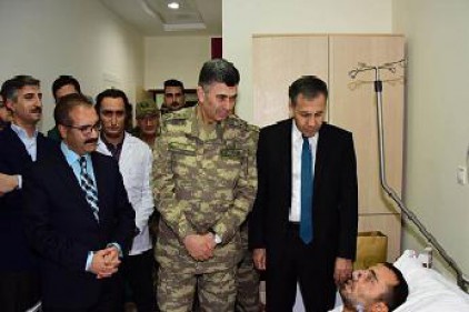 Doktorlardan tedavi gören askerlerin durumları hakkında bilgi alan Orgeneral Çolak ve Vali Yerlikaya ailelere geçmiş olsun diyerek, tedavi gören askerlere acil şifalar diledi.İHA