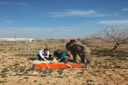 Askerlerin 153 ihbar hattını araması üzerine harekete geçen hayvanat bahçesi köpek barınağı personeli, hayvan ambulansıyla Karkamış’a gitti.