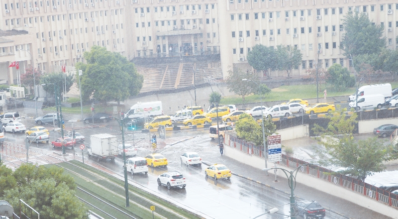 Haftalardır etkisini sürdüren sıcak hava, öğle saatlerinde yerini sağanak yağışa bıraktı. Aralıklarla gök gürültülü devam eden yağmur nedeniyle vatandaşlar bina ve ağaç altlarına sığındı.