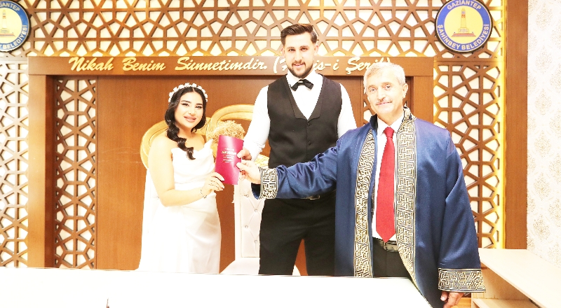 Türkiye’de en fazla nikâh kıyan ve en fazla çocuğun olduğu ilçe konumunda bulunan Şahinbey İlçesi’nde 2021 yılının son çiftinin nikâhlarını Şahinbey Belediye Başkanı Mehmet Tahmazoğlu kıyarken, çiftin şahitliğini MHP Şahinbey İlçe Başkanı İlker Kızıklı yaptı.